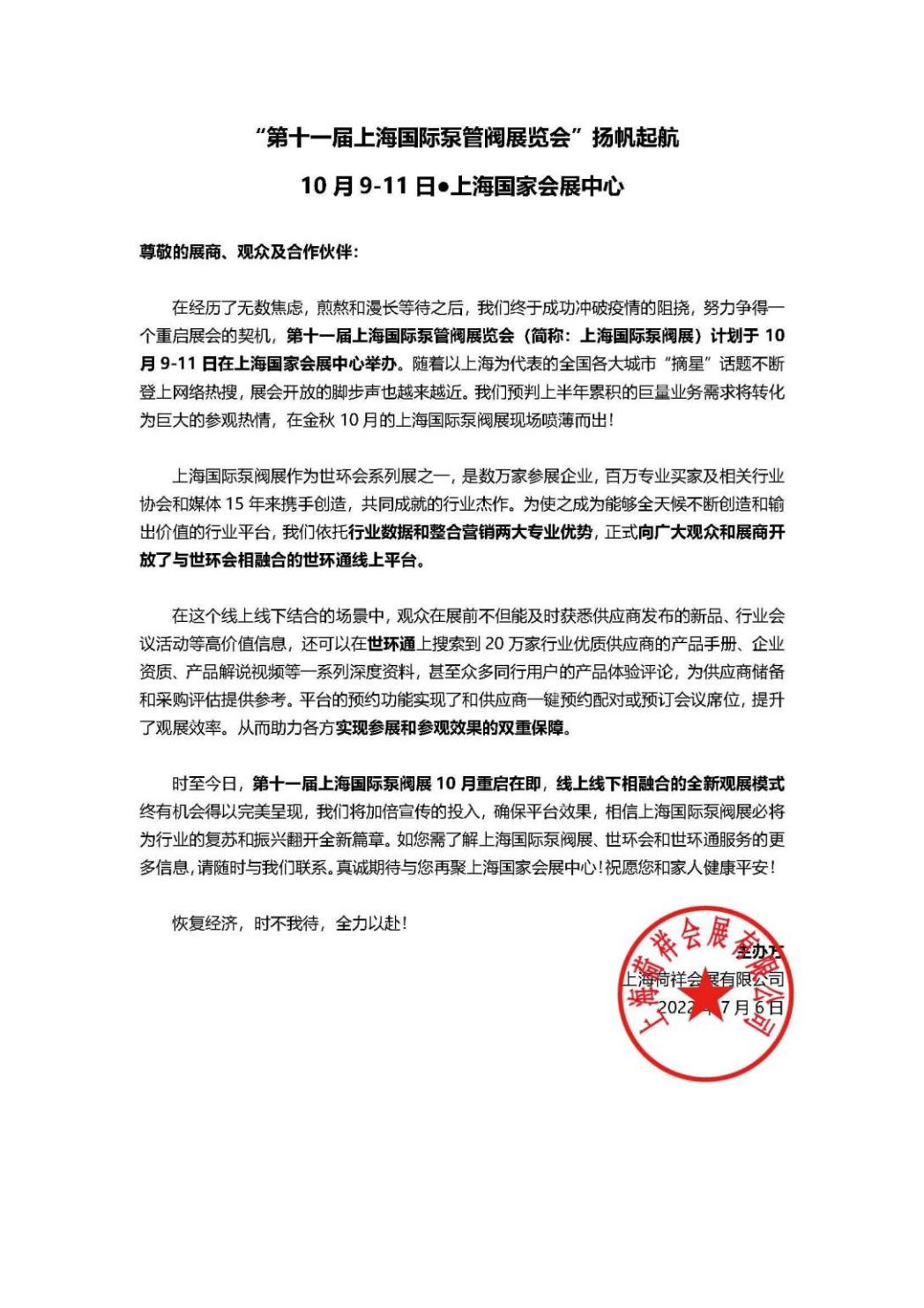 “疫”別多日,全力以“復”丨2022上海國際泵閥展定檔10月