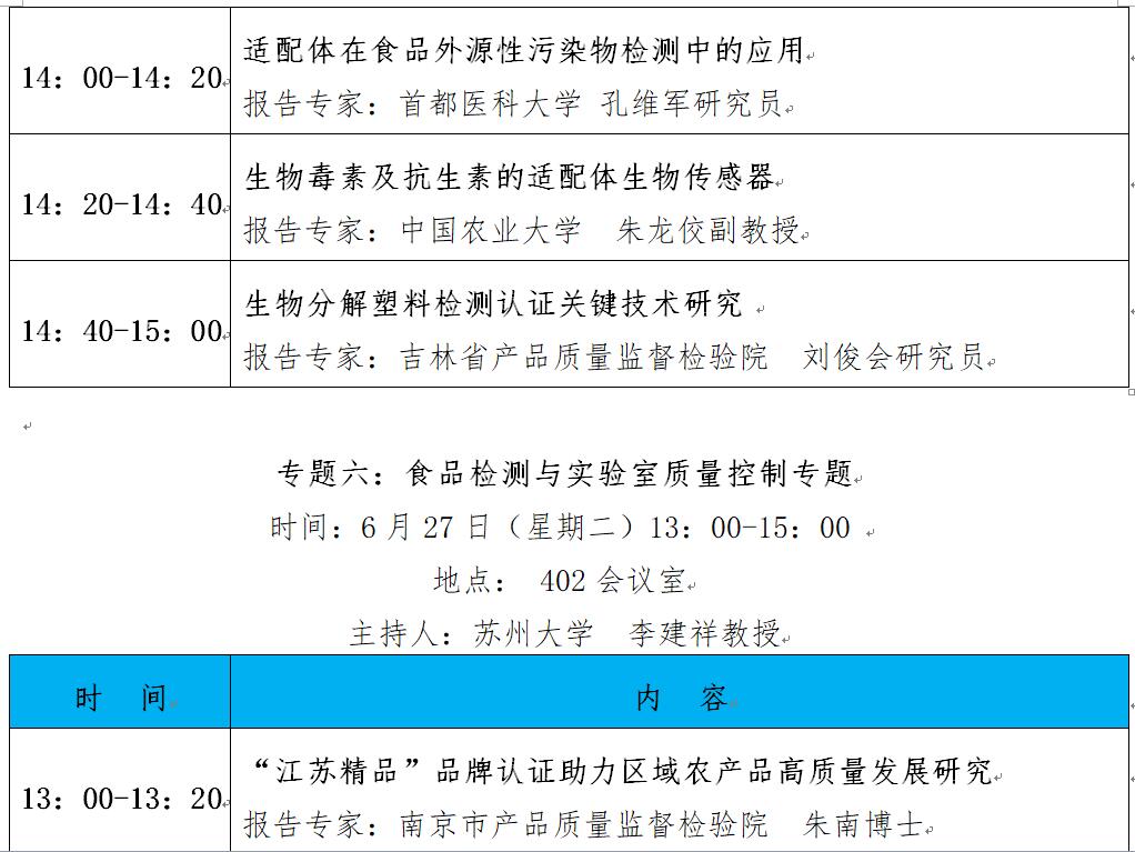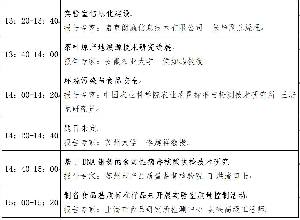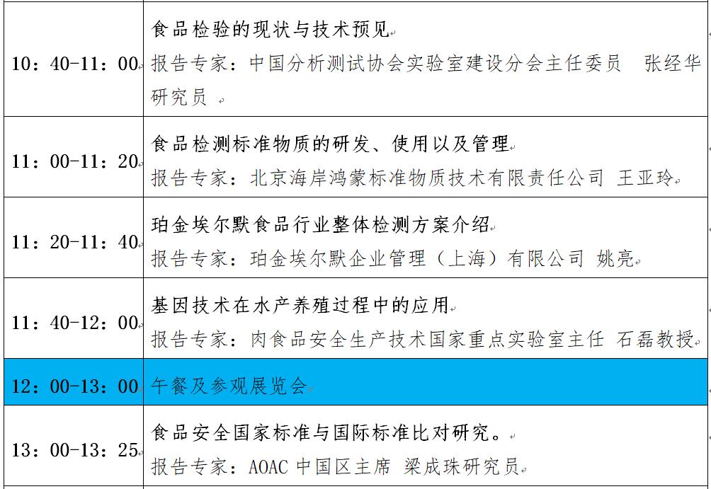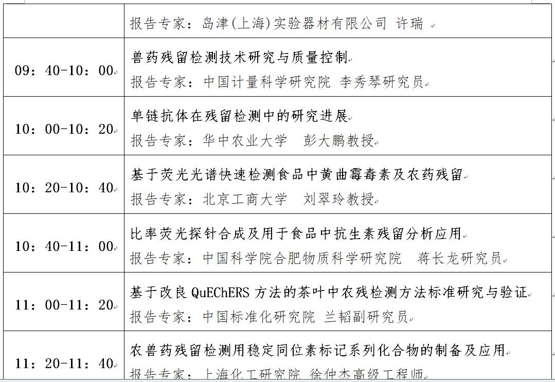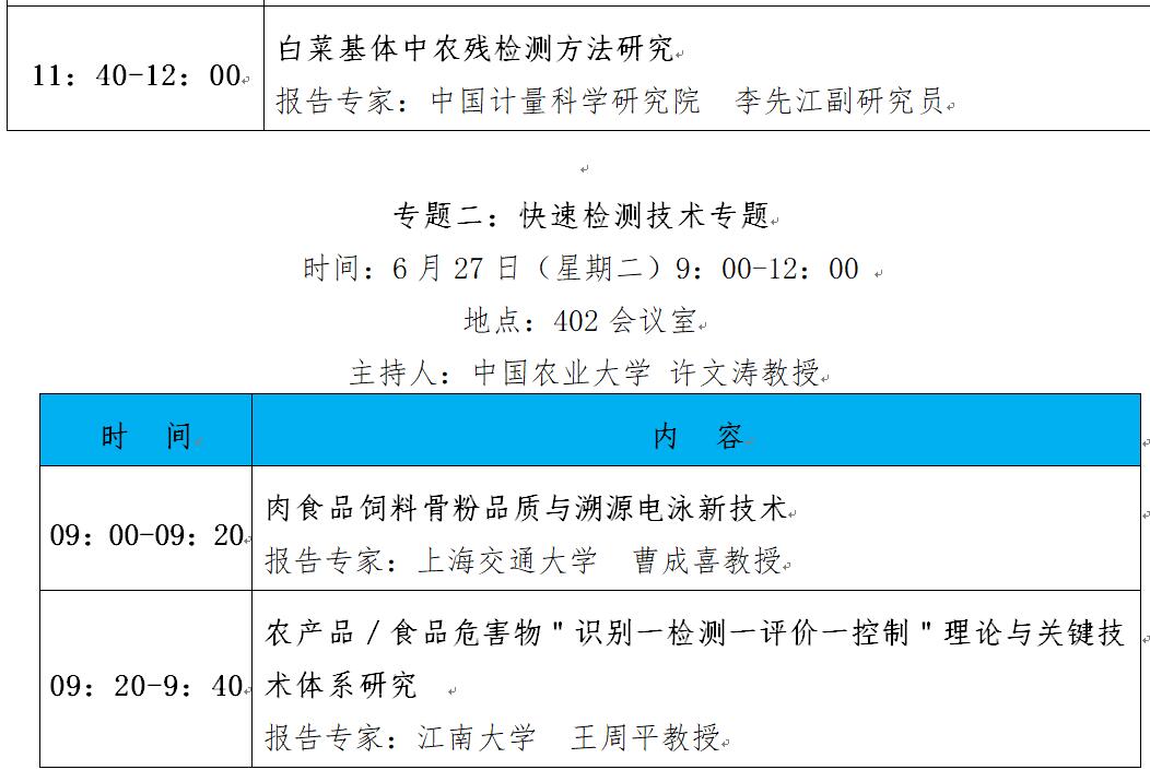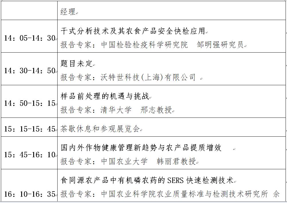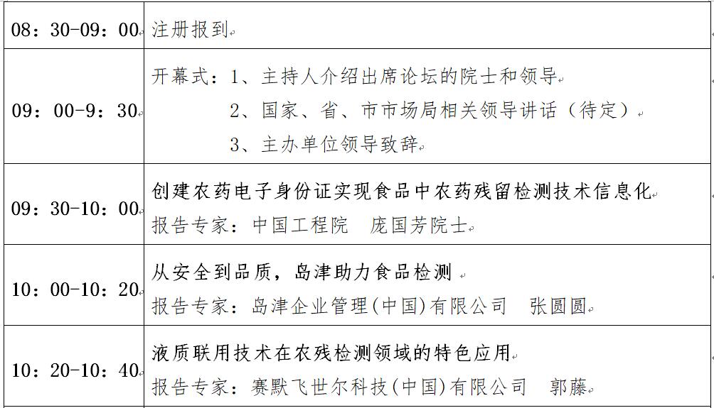 “第十二屆中國食品與農(nóng)產(chǎn)品安全檢測技術(shù)與質(zhì)量控制國際論壇”大會日程表