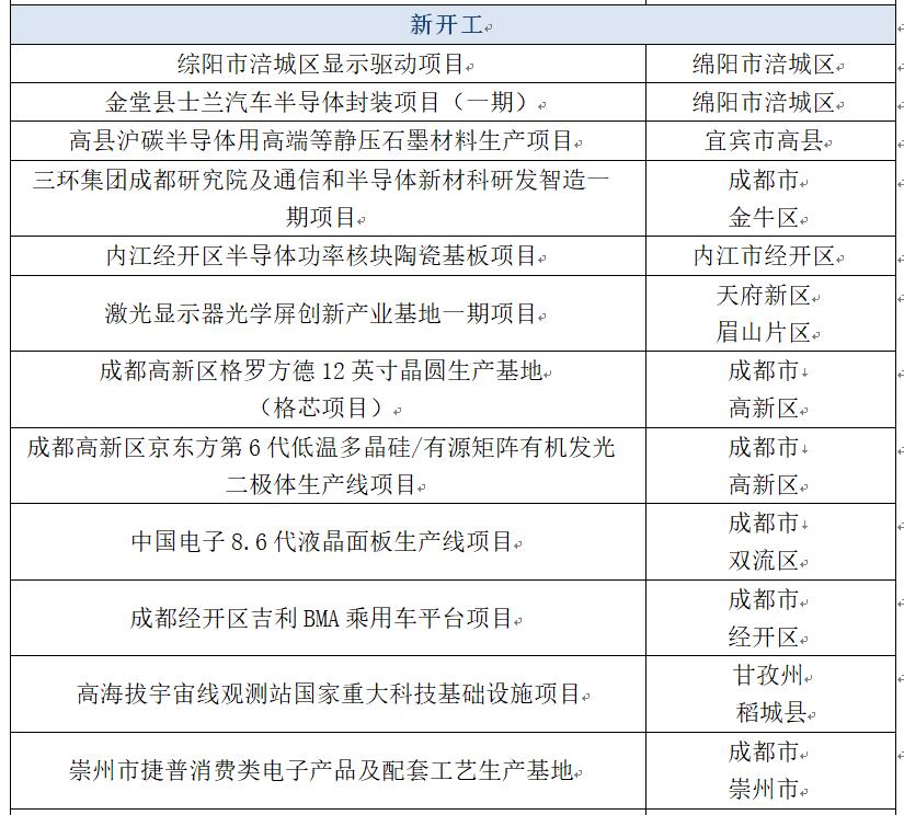 2023年1月,四川省發(fā)展改革委公布2023年四川省重點(diǎn)項(xiàng)目名單,其中,成都高新區(qū)奕斯偉板級封裝系統(tǒng)集成電路項(xiàng)目(一期)、成都市雙流區(qū)屏芯智能制造基地等項(xiàng)目在列。