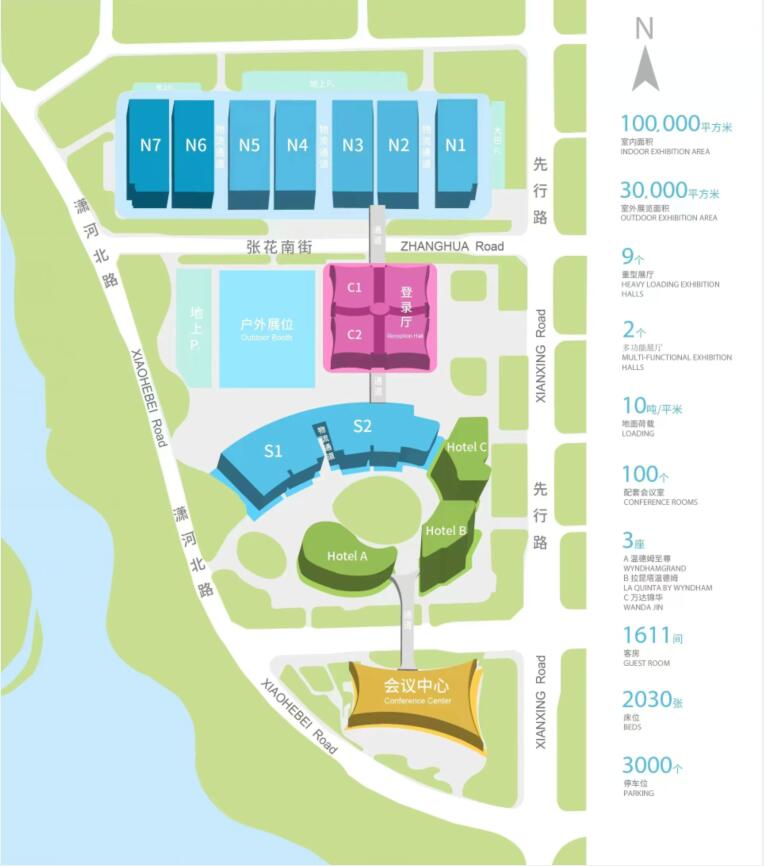瀟河國際會展中心占地約766.3畝,總建筑面積為28.1萬平方米,由北展、中展、南展組成,共計11個室內(nèi)展廳。建成運(yùn)營后的會展中心,不僅是瀟河新城地標(biāo)性建筑之一,還將成為省內(nèi)首個可承接國際化、高端化、專業(yè)化大型會展的國際性專業(yè)展館。2022年11月1日,歷經(jīng)1年零9個月的建設(shè),瀟河國際會議會展中心開門迎客,正式開始試運(yùn)營。 [2] 2023年01月01日,瀟河國際會議會展中心及配套酒店群開業(yè)。山西·瀟河新城位于山西綜改示范區(qū)瀟河產(chǎn)業(yè)園區(qū)太原起步區(qū)核心位置,距太原武宿國際機(jī)場、太原南站約30公里,太原古縣城及晉祠約25公里,總占地面積9.29平方公…
