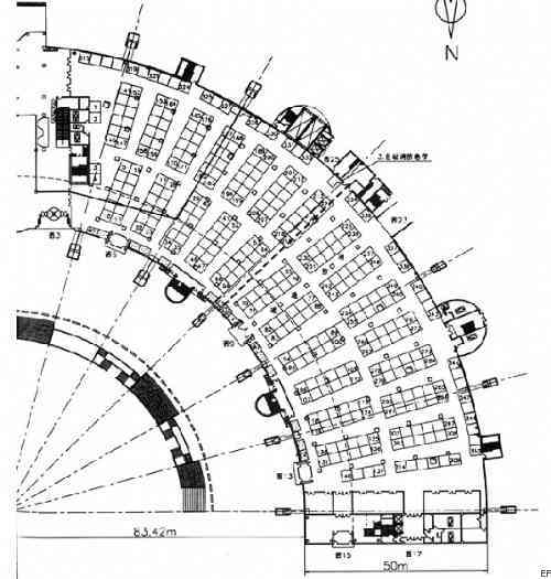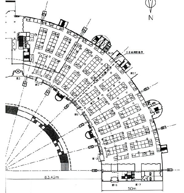 中心中央大堂高40米,面積2,000平方米,富麗堂皇,氣勢恢宏,音響效果極佳,可舉辦大型慶典及娛樂活動。中央大堂兩翼是室內(nèi)展館,分東西兩個展廳,獨(dú)特的“人”字型鋼體結(jié)構(gòu)設(shè)計,使得展廳內(nèi)南北跨度50米,沒有一根立柱。展場使用面積 1.4萬平方米,可搭建729個展位(其中標(biāo)準(zhǔn)展位704個,非標(biāo)準(zhǔn)展位25個);整個展區(qū)又可根據(jù)需要分割成面積為3,100平方米小展廳各兩個。室外展場面積6,000平方米,可展出重型 機(jī)械設(shè)備和舉辦大型慶典活動。